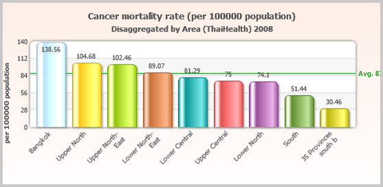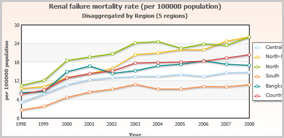 Health statistics comparing across areas by showing various types of charts