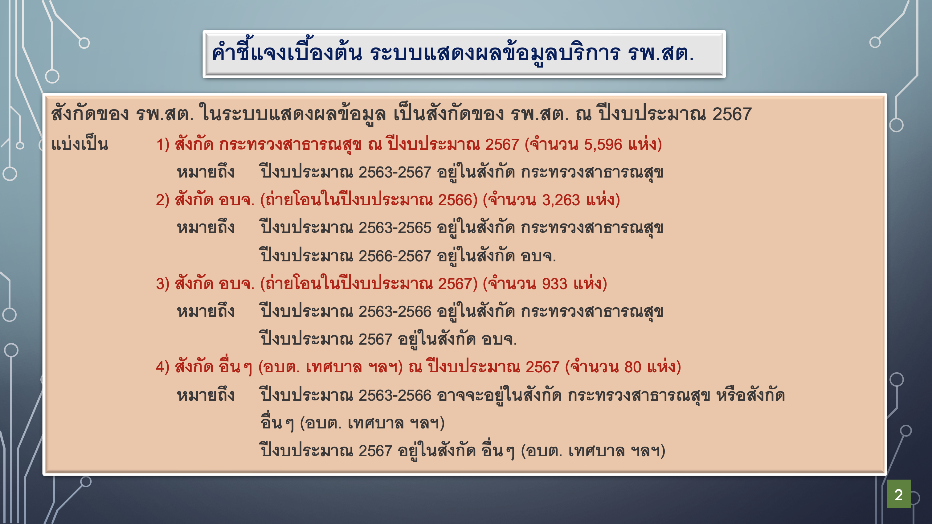 2) คำอธิบายสังกัดของ รพ.สต. ในการแสดงผลข้อมูล
