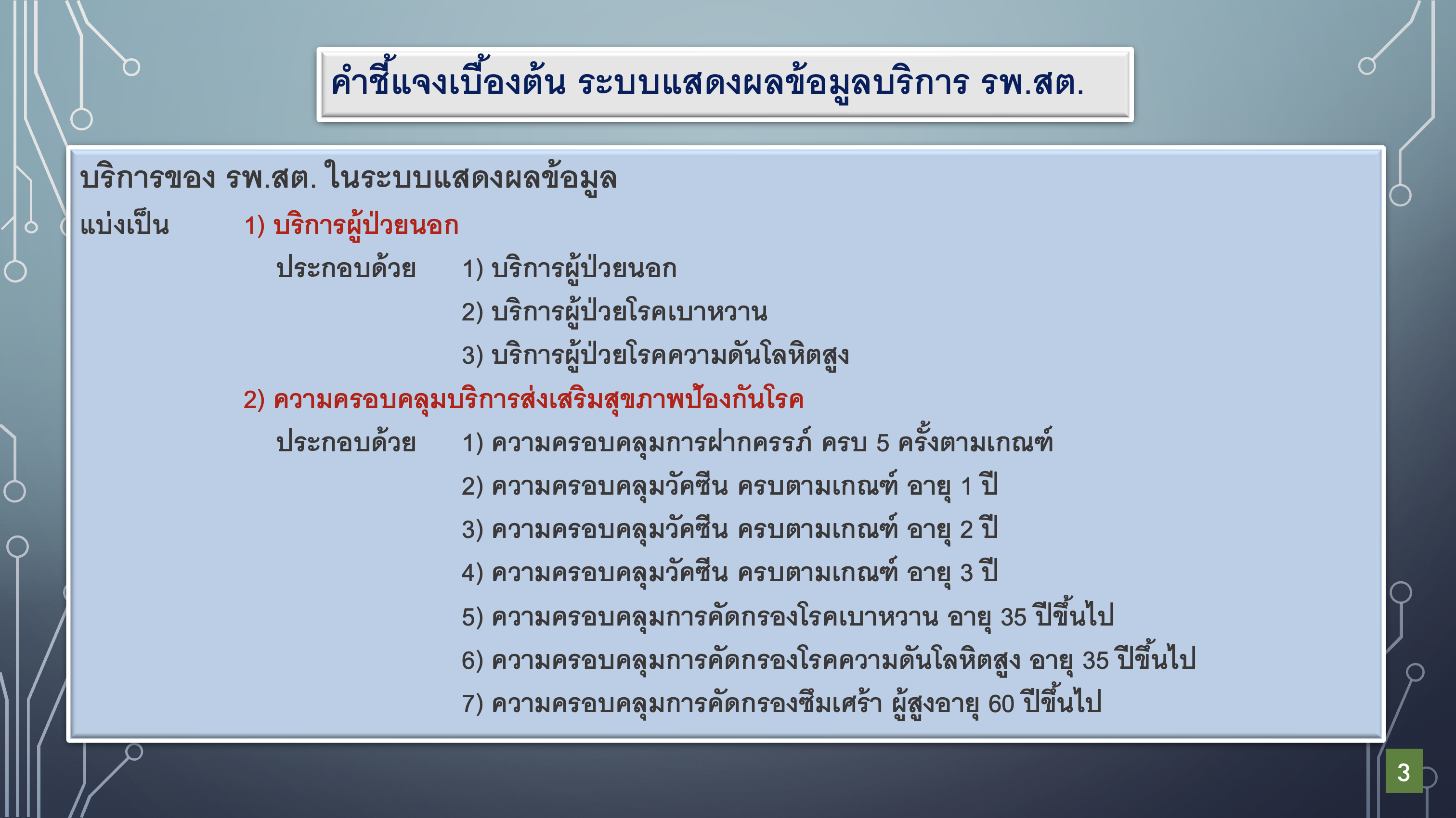 3) รายการข้อมูลบริการของ รพ.สต. ในการแสดงผลข้อมูล