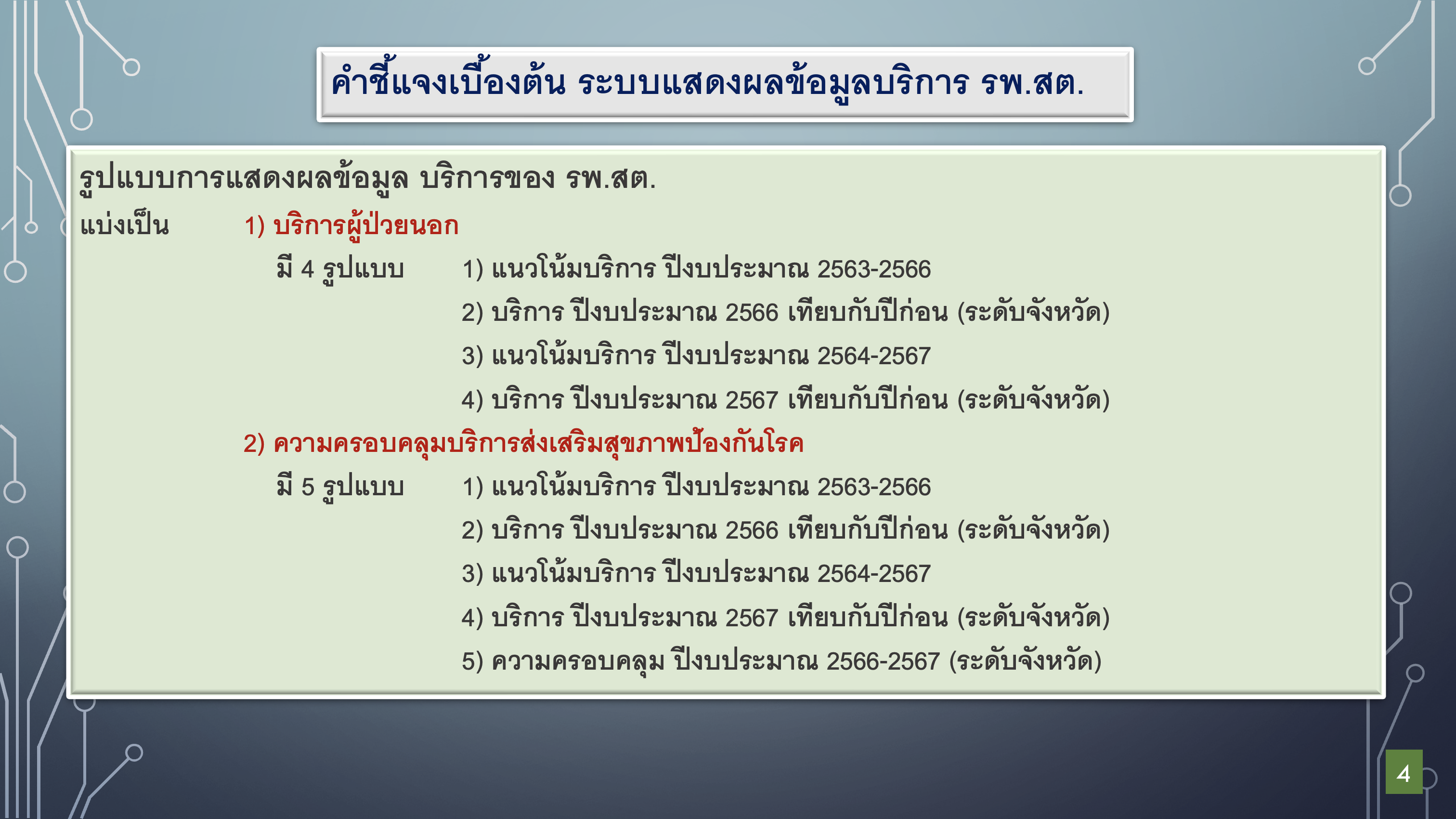 4) รูปแบบการแสดงผลข้อมูลบริการ รพ.สต.