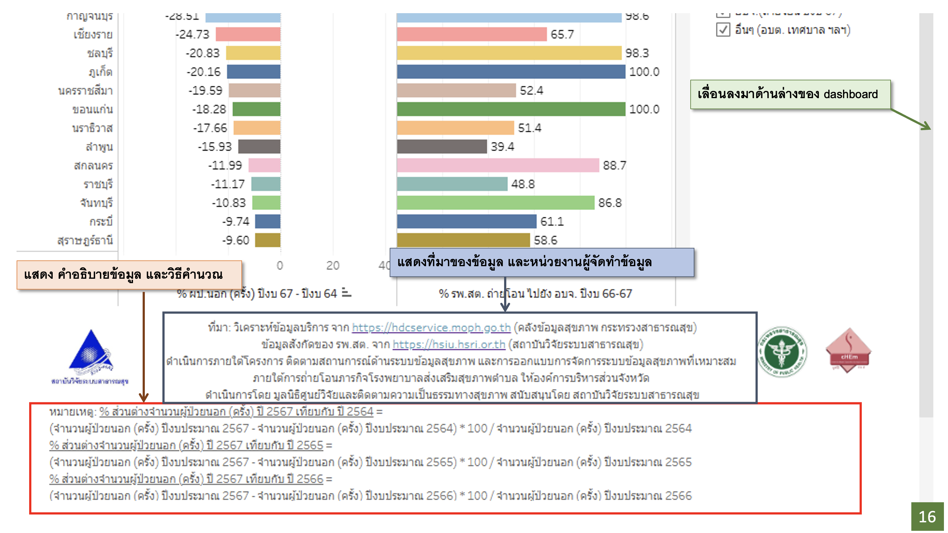 16) การแสดงที่มาของข้อมูล คำอธิบายความหมาย วิธีคำนวณ