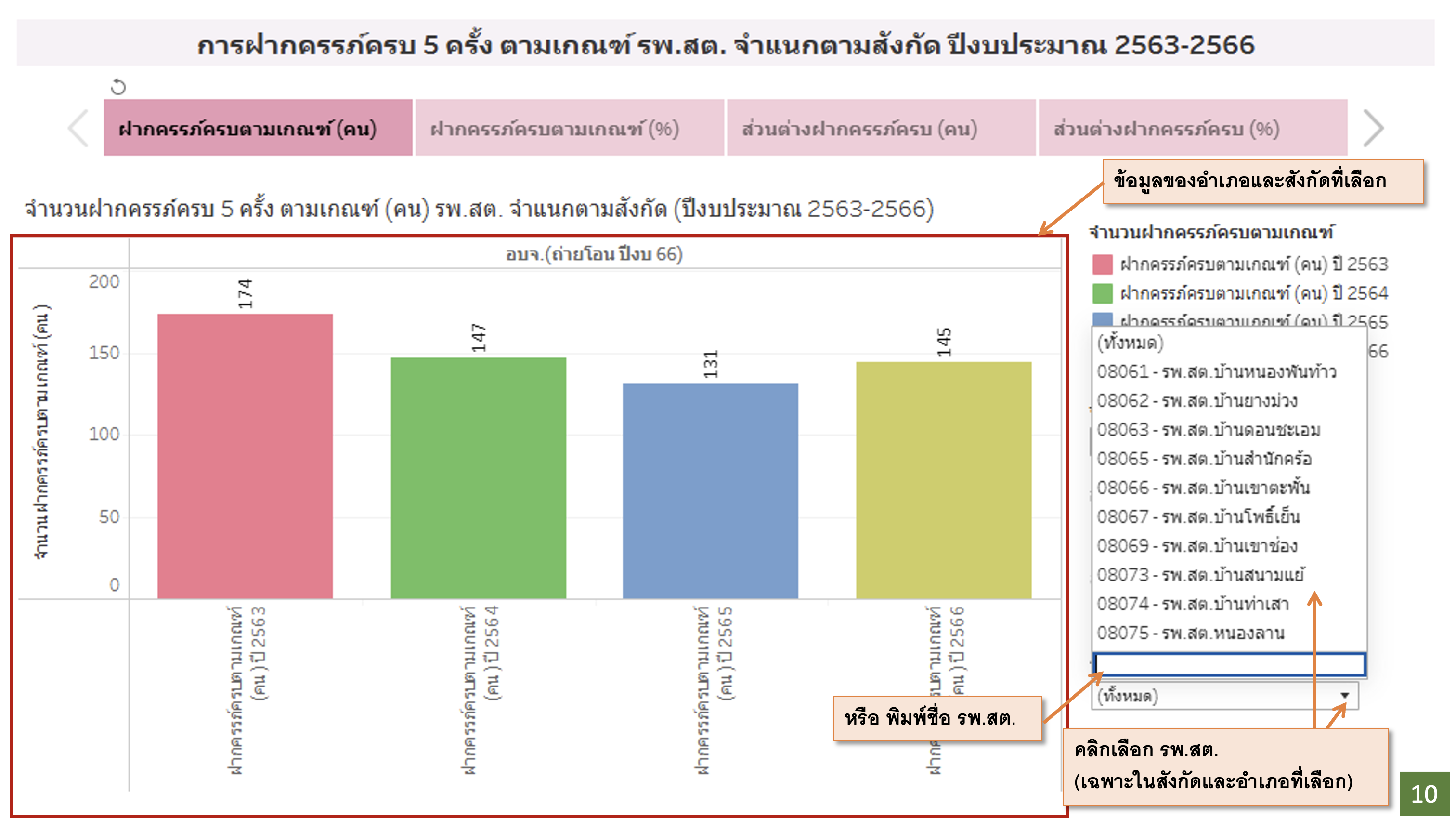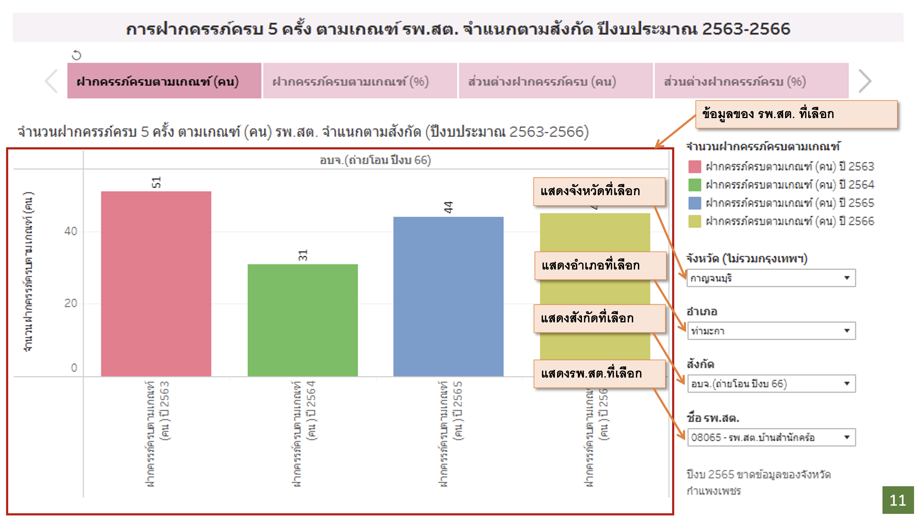 11) การเลือกตัวกรอง: การแสดงข้อมูลของรพ.สต. ที่เลือก