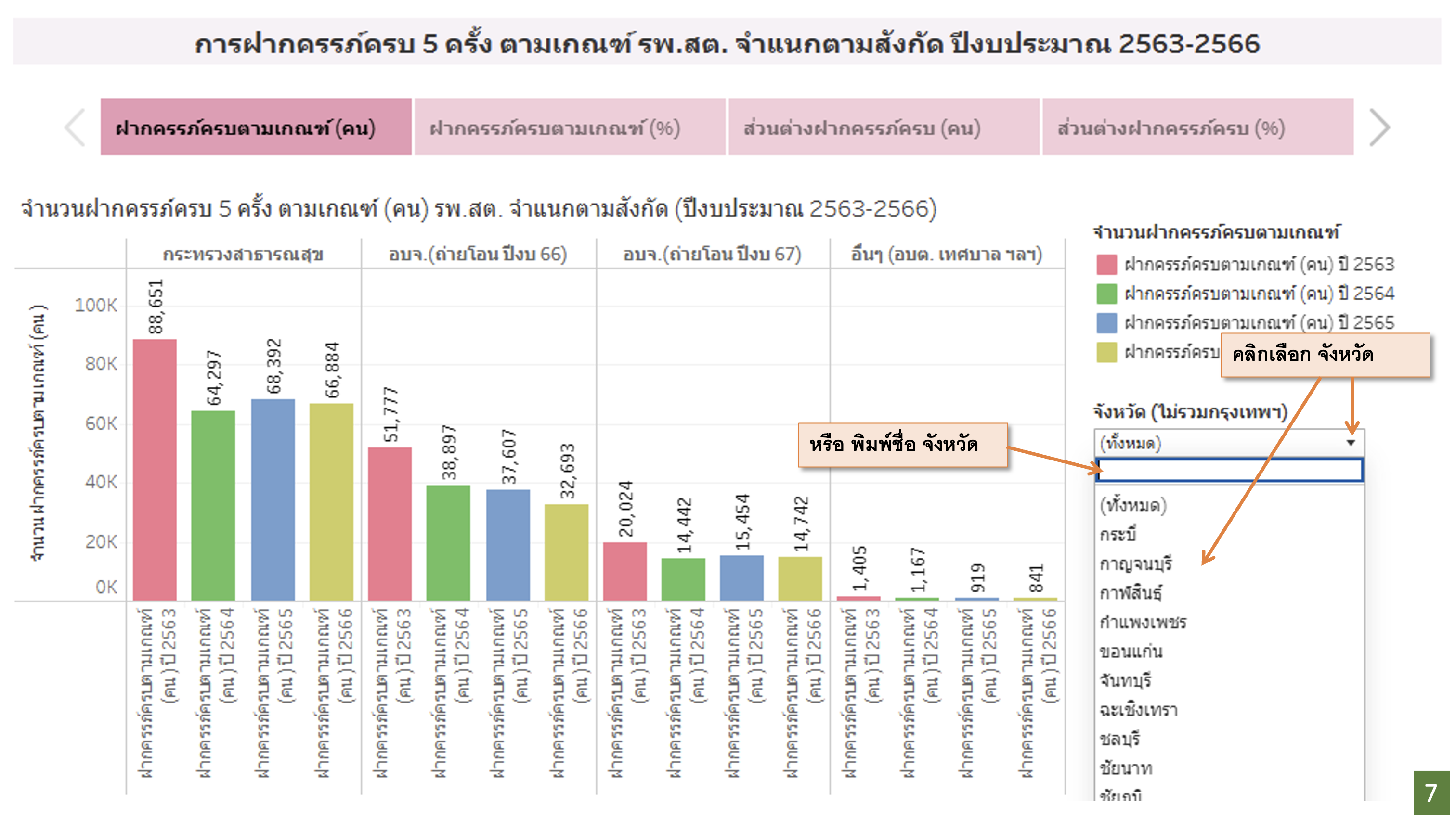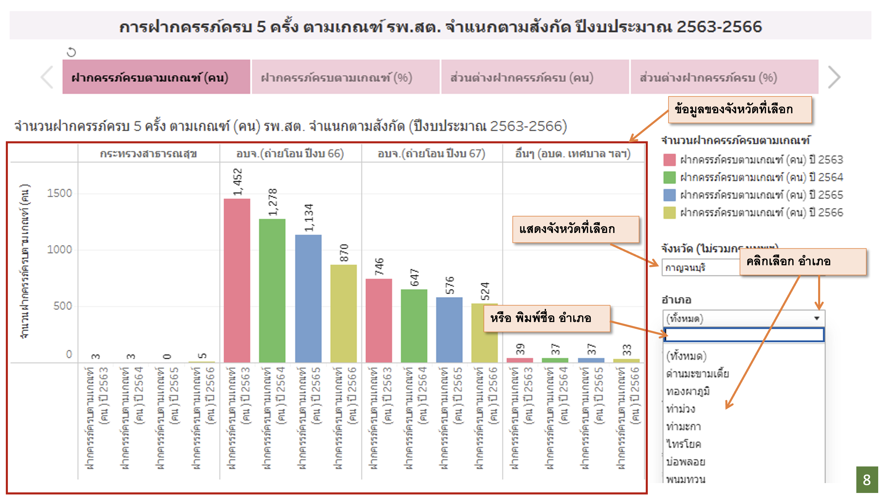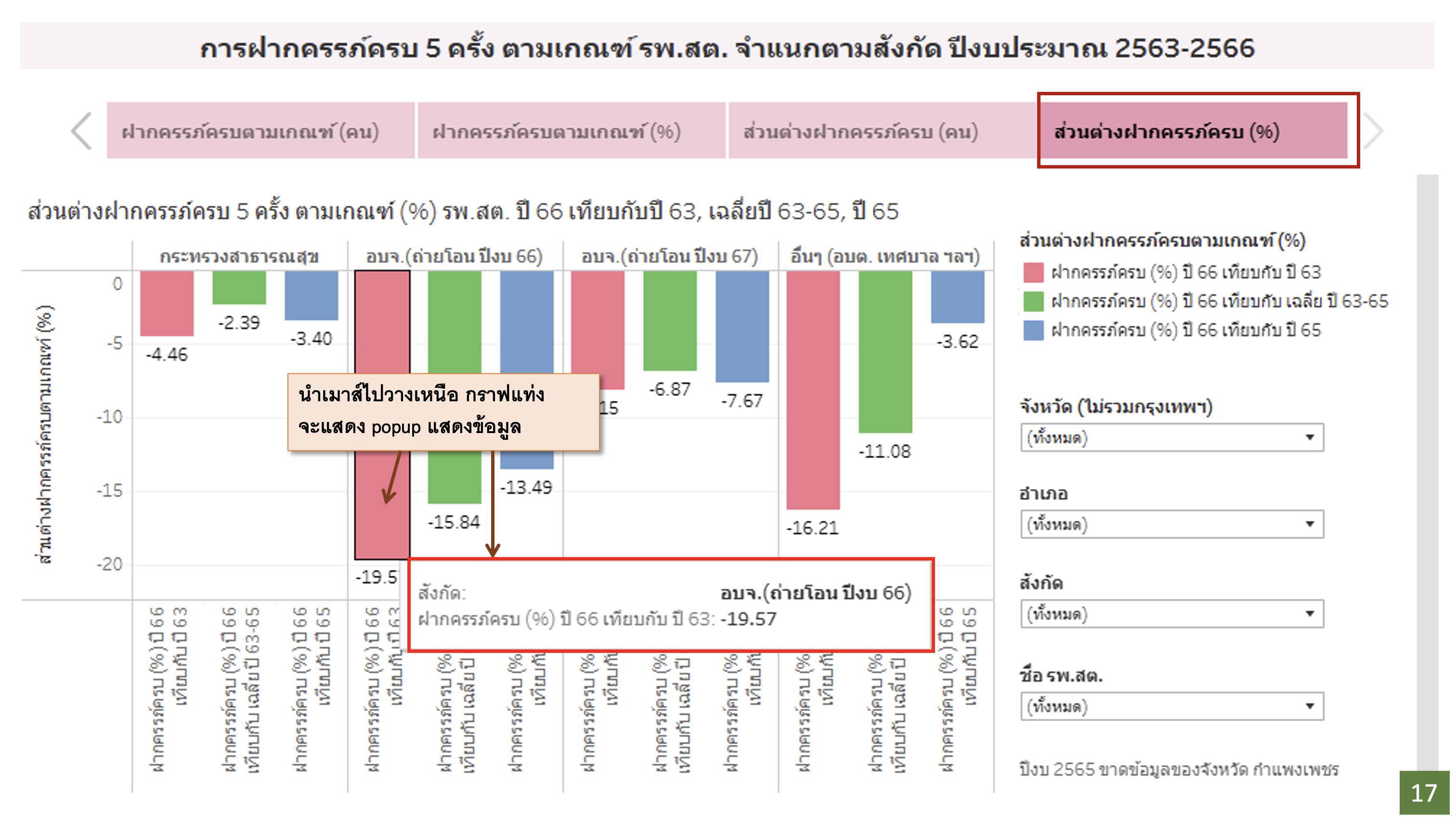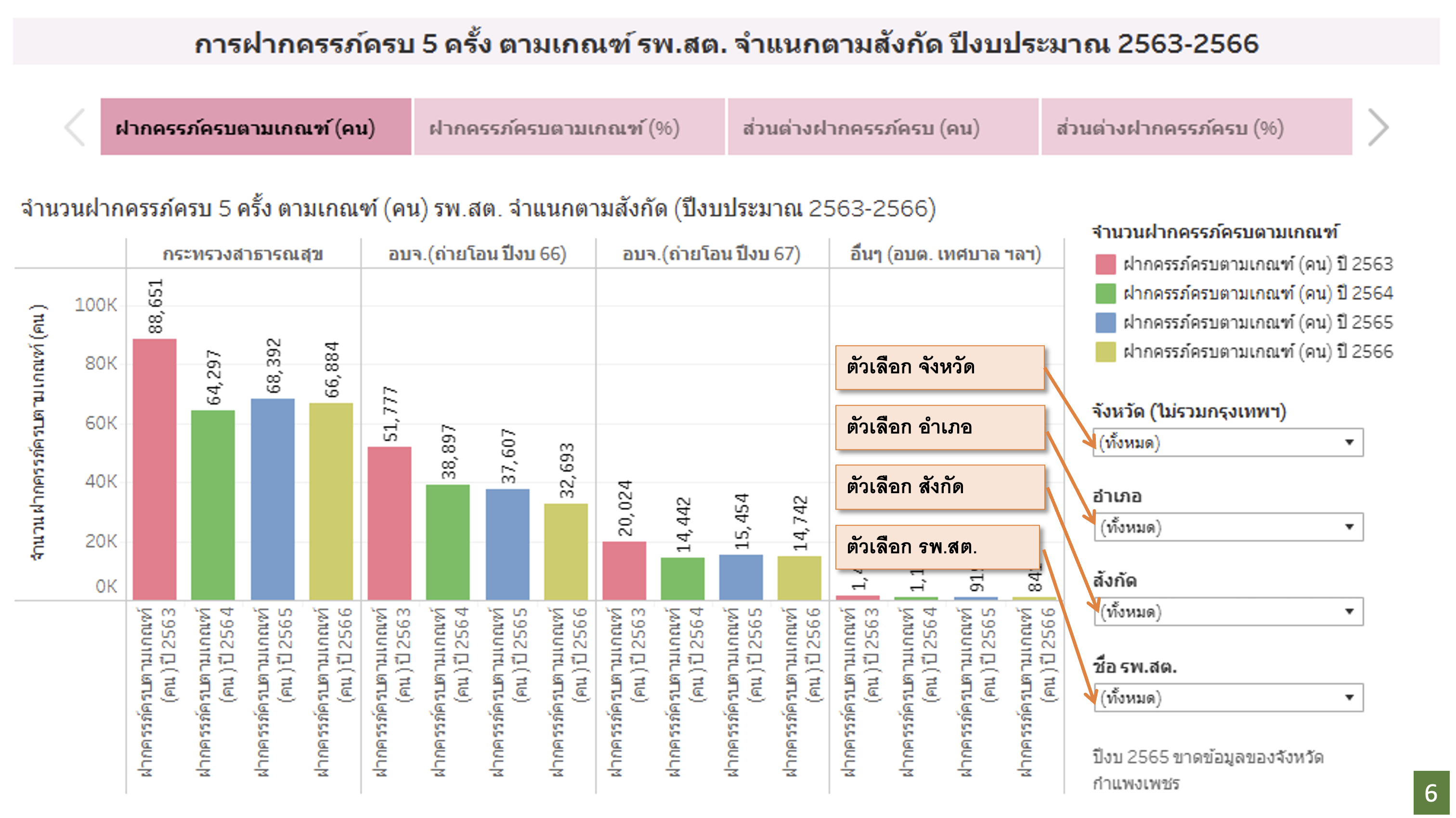6) การเลือกตัวกรอง: การเลือกจังหวัด อำเภอ สังกัด และรพ.สต.