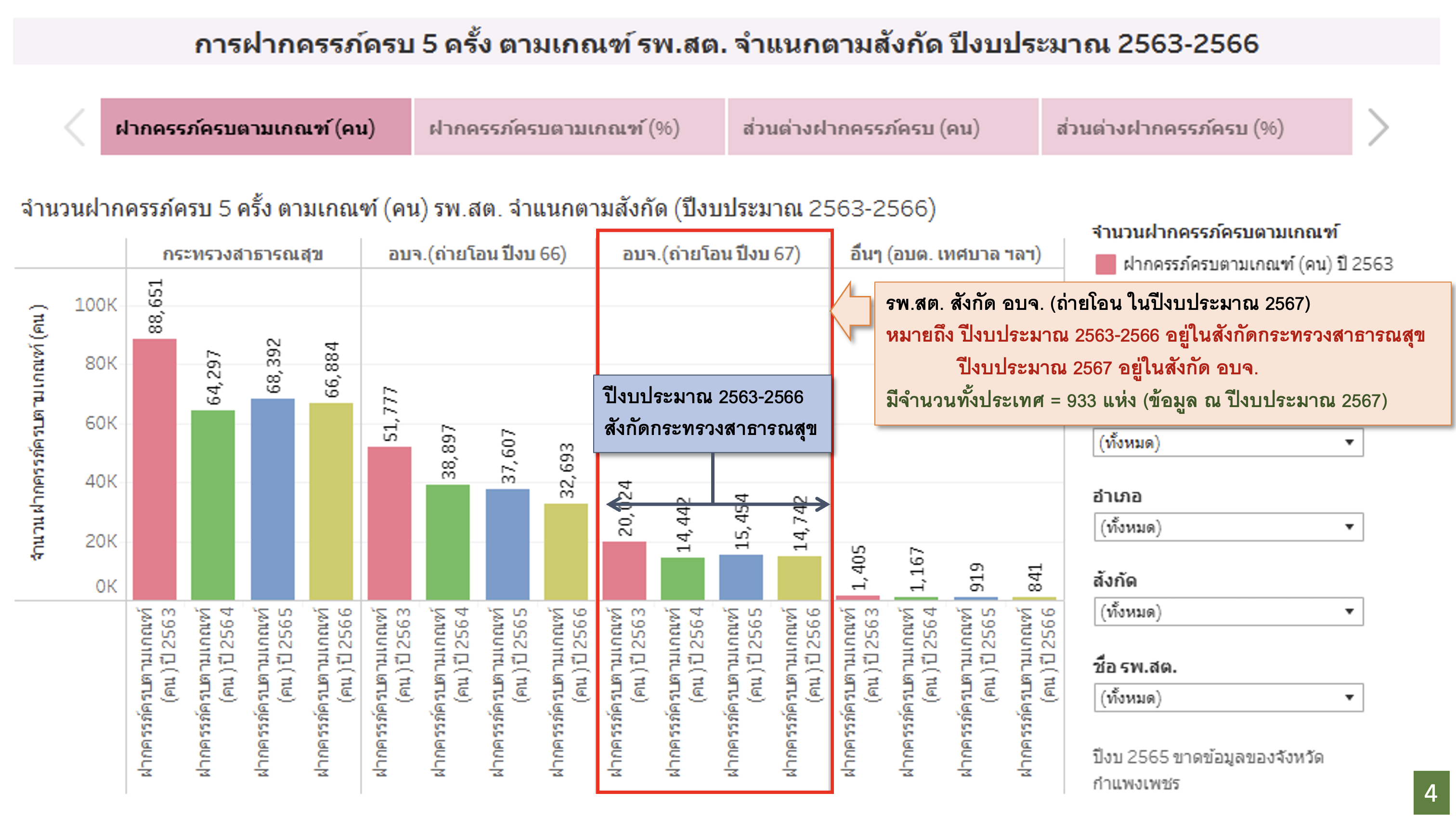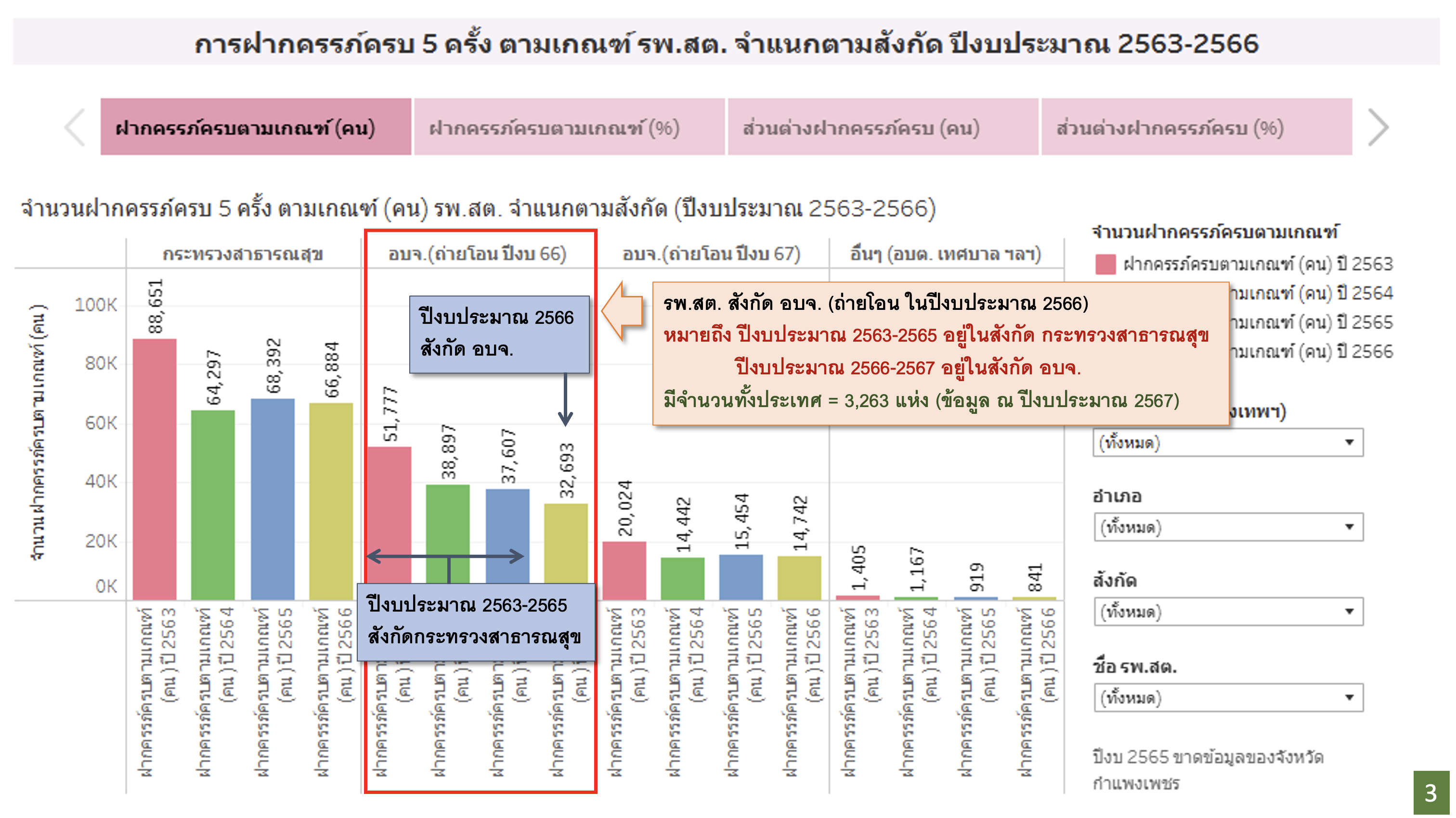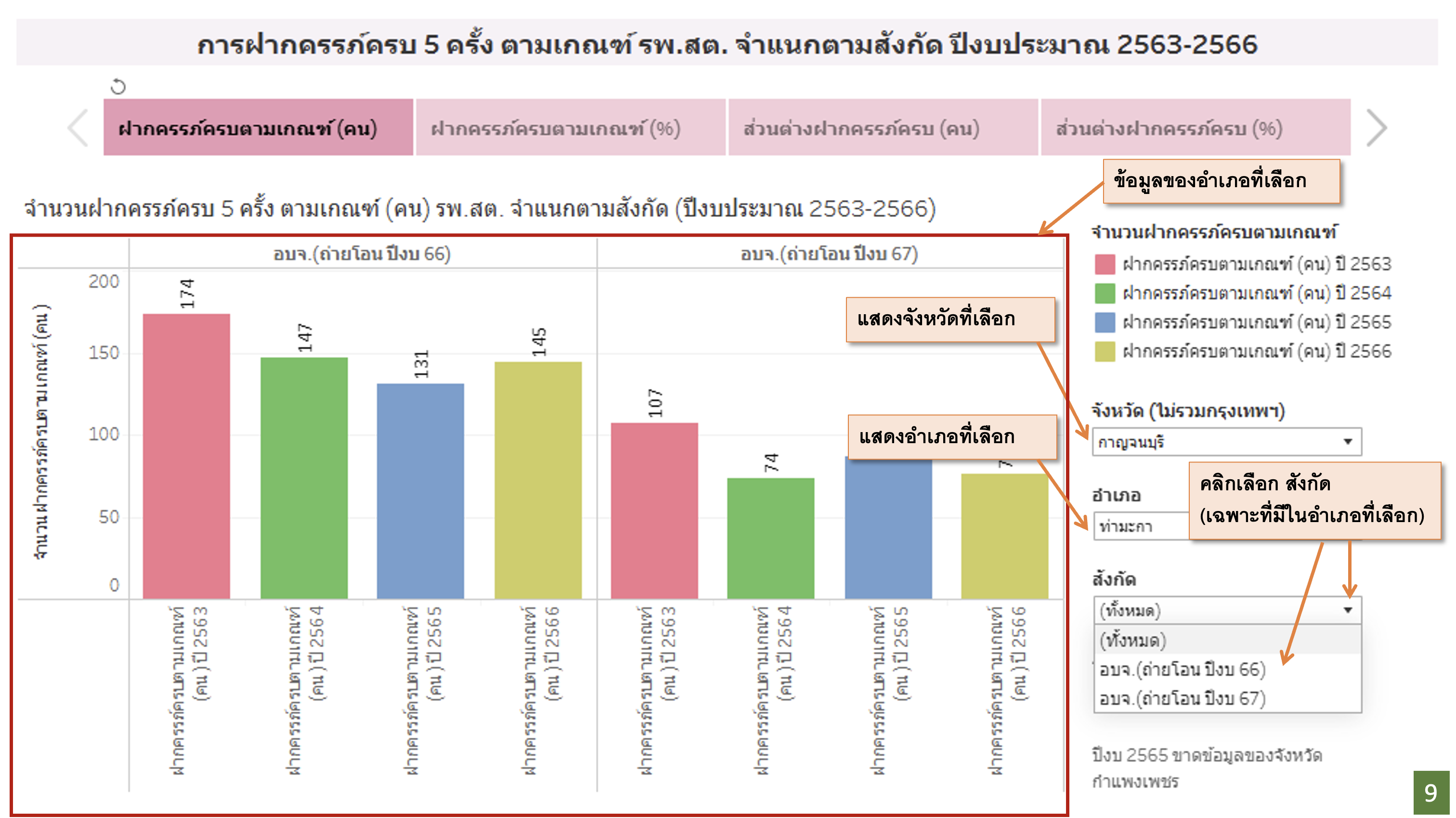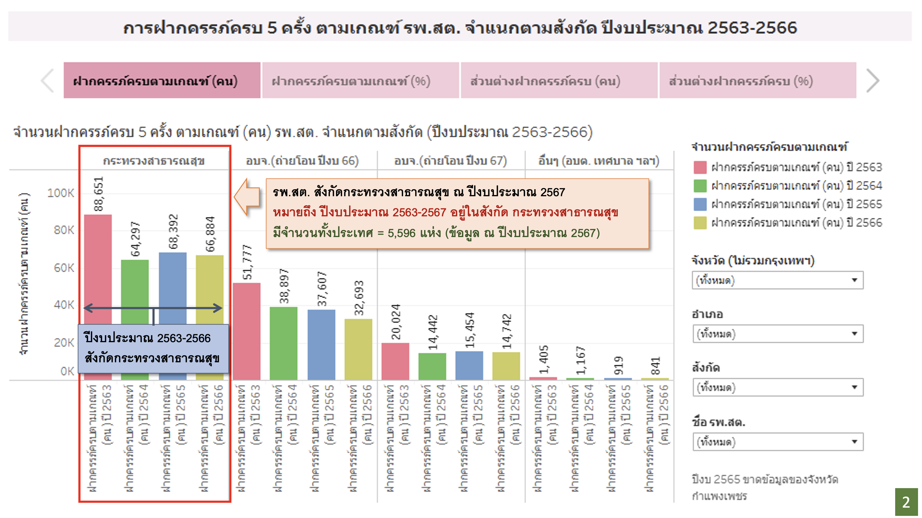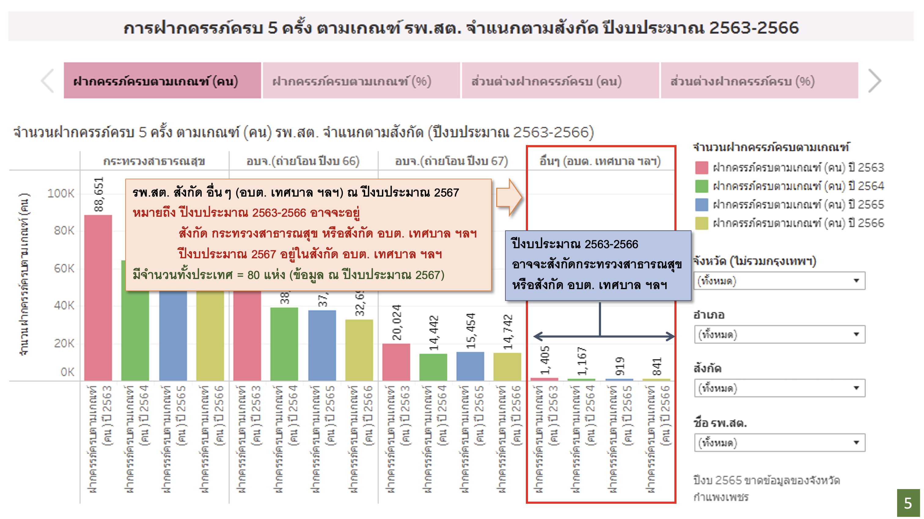 6) การเลือกตัวกรอง: การเลือกจังหวัด อำเภอ สังกัด และรพ.สต.