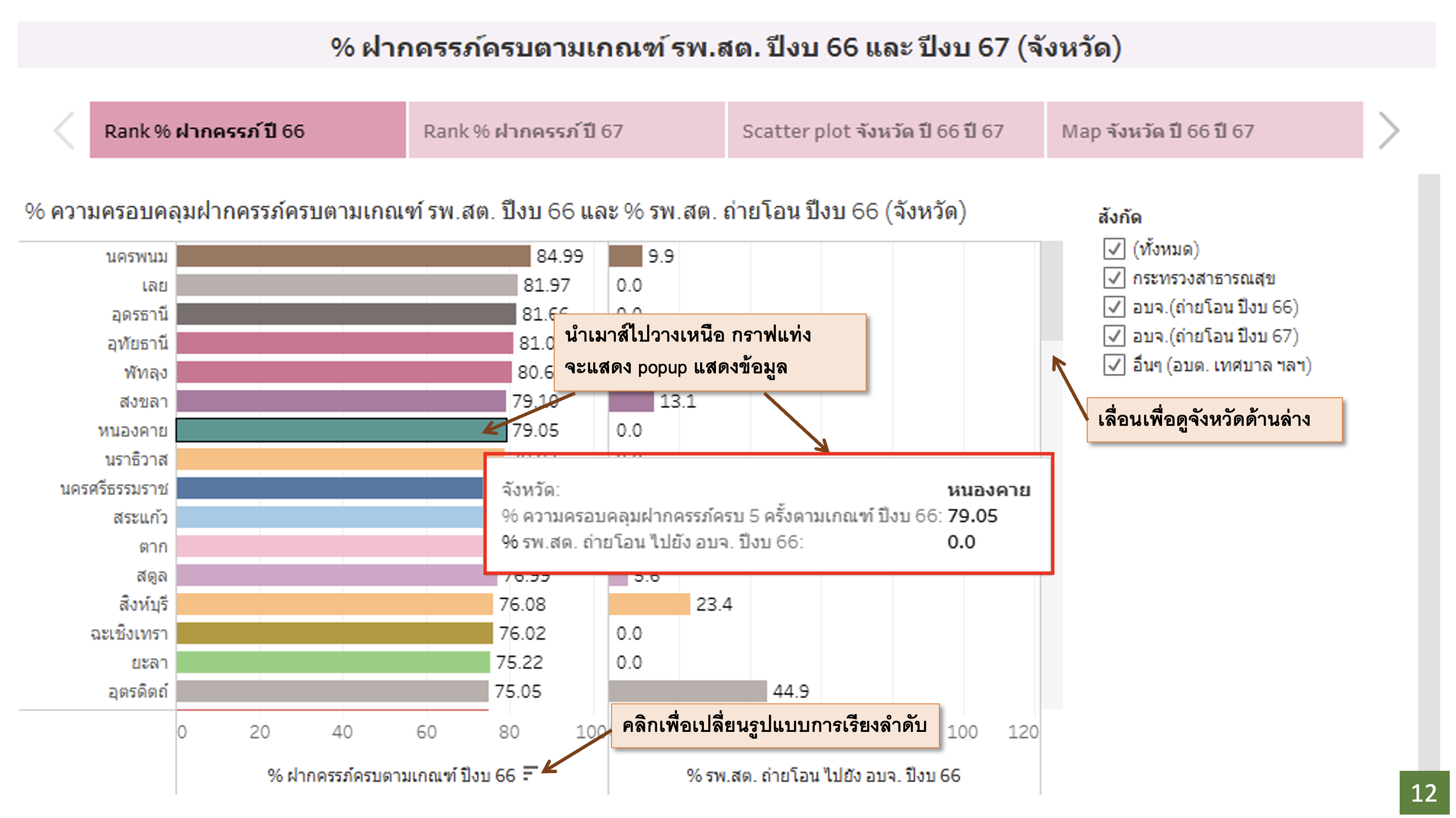 12) การแสดงข้อมูลบนกราฟแท่ง และการเรียงลำดับจังหวัด
