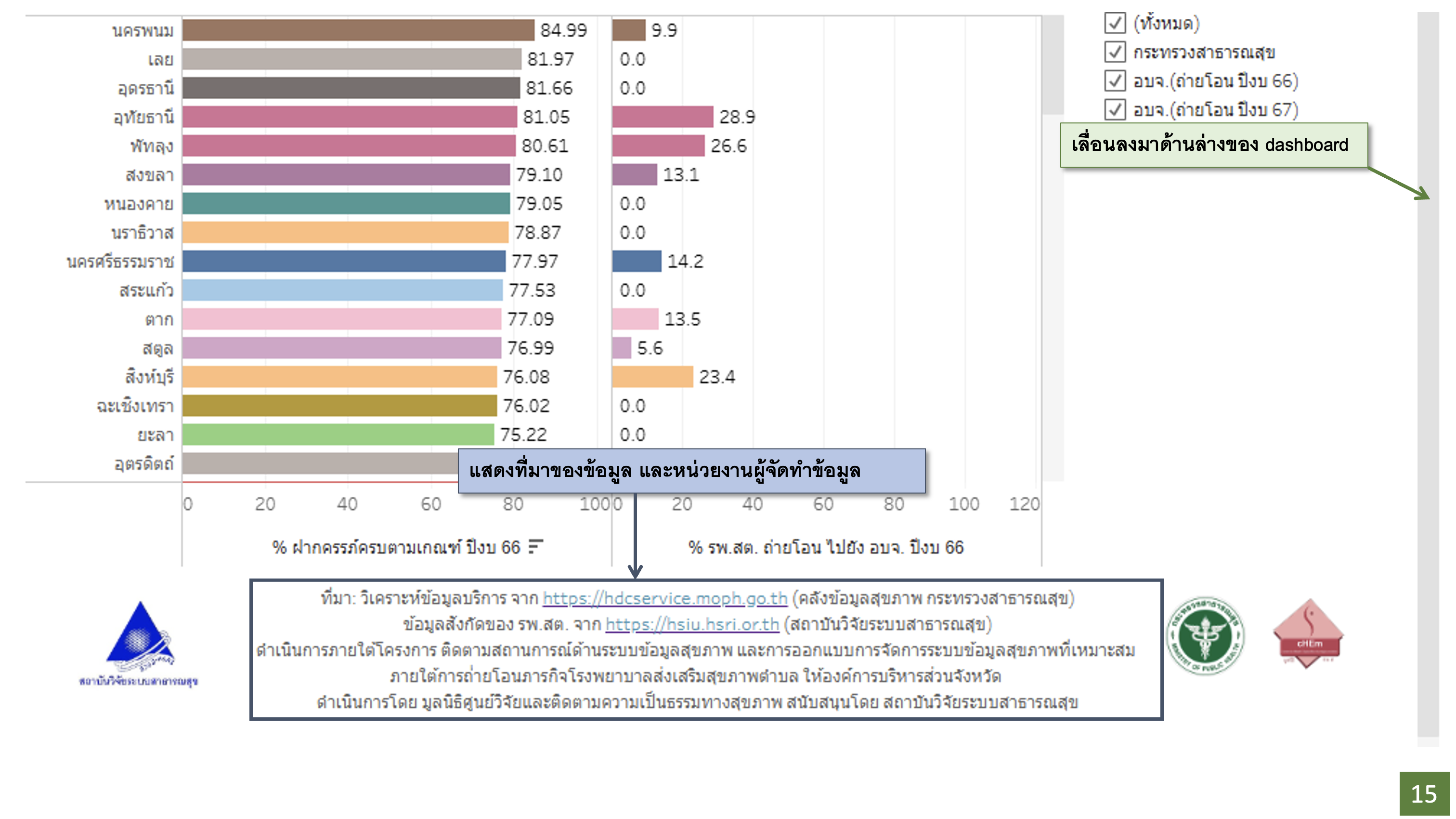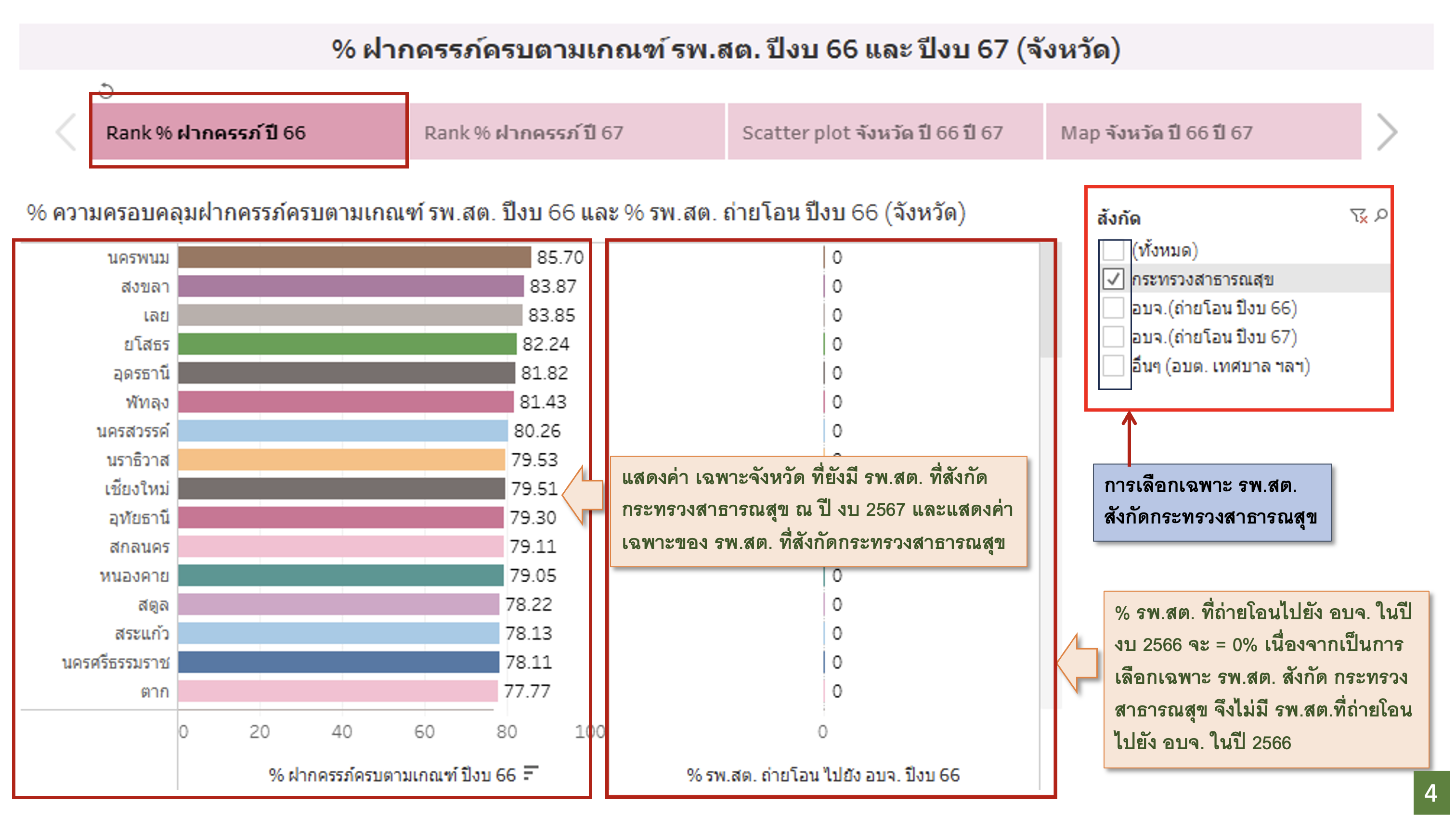 4) การแสดงผลข้อมูล: การเลือก รพ.สต. สังกัด กระทรวงสาธารณสุข