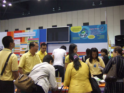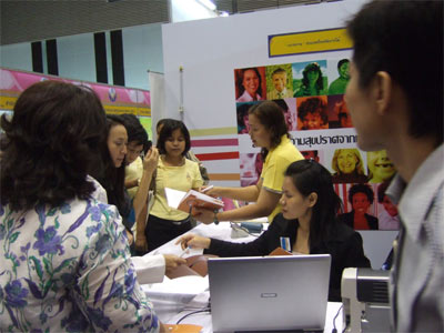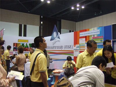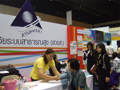 สถาบันวิจัยระบบสาธารณสุข (สวรส.) เป็นองค์กรหนึ่งในระบบวิจัยที่มีผลงานการวิจัยอย่างมากมายและในครั้งนี้ก็ได้เป็นส่วนหนึ่งที่มานำเสนอถึงผลงานวิจัยเกี่ยวกับเรื่อง โรคเบาหวาน ในบูธงานแสดงผลงานในส่วนของสวรส.ได้แบ่งออกเป็น 3 ส่วนคือ ในส่วนของประชาชนทั่วไปที่สนใจ , ในส่วนของนักวิชาการและนักวิจัยและส่วนของการขับเคลื่อนเชิงนโยบาย ซึ่งได้รับความสนใจจากผู้เข้าเยี่ยมชมทุกระดับ โดยเฉพาะในส่วนของการประเมินความเสี่ยงต่อการเกิดเบาหวาน ซึ่งดำเนินการศึกษาวิเคราะห์โดย นายแพทย์วิชัย เอกพลากร (โรงพยาบาลรามาธิบดี)และได้รับการสนับสนุนจาก สำนักงานพัฒนาระบบข้อมูลข่าวสารสุขภาพ(HISO) ซึ่งเป็นหน่วยงานภายใต้ สวรส. ในการนำเสนอในครั้งนี้ได้รับความสนใจในการเยี่ยมชม,สอบถามข้อมูลและเข้ามารับการ ประเมินความเสี่ยงเบาหวานกันอย่างทั่วถึง รวมทั้งการให้คำแนะนำจากนักวิชาการถึงการลดความเสี่ยงต่างๆ เป็นรายบุคคลอีกด้วย แบบประเมินความเสี่ยงเบาหวานนี้สามารถทำได้เองที่บ้าน และที่อื่นๆ เพียงแต่เราเข้าใจถึงวิธีการประเมิน หรือ สามารถใช้ Internet และเข้ามาทำแบบประเมินความเสี่ยงเบาหวานที่ Website (www.hiso.or.th) โดยไม่เสียค่าใช้จ่ายแต่อย่างใด อีกทั้งยังสามารถเฝ้าระวังและลดปัจจัยเสี่ยงต่างๆที่ตนเองมีในการเป็นเบาหวานลงได้อีกด้วย.