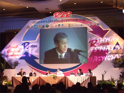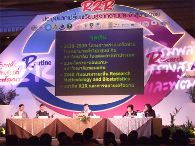 เนื่องจากปัจจัยที่เกี่ยวข้องกับปัญหาสุขภาพในปัจจุบันมีการเปลี่ยนแปลงไปอย่างรวดเร็ว ดังนั้นการแก้ไขปัญหาจึงต้องอาศัยความรู้เพิ่มมากขึ้น การส่งเสริมงานวิจัยถือเป็นภารกิจที่มีความสำคัญต่อการสร้างองค์ความรู้เพื่อเปลี่ยนแปลงระบบสุขภาพ และเพื่อขยายเครือข่ายนักวิจัยให้เพิ่มมากขึ้น สถาบันวิจัยระบบสาธารณสุข (สวรส.) ในฐานะที่เป็นองค์การหลักที่สนับสนุนงานวิจัยและเสริมสร้างความเข้มแข็งให้กับระบบสาธารณสุข จึงได้ร่วมกับภาคีเครือข่าย จัดประชุมแลกเปลี่ยนเรียนรู้ ในหัวข้อเรื่อง "R2R: เสริมพลังสร้างสรรค์ และพัฒนา " โดยมีผู้ให้ความสนใจเข้าร่วมรับฟังมากกว่า 1,400 คน ประกอบด้วย แพทย์ พยาบาล เภสัชกร นักวิชาการสาธารณสุข และเจ้าหน้าที่จากแผนงานต่างๆ กว่า 50 หน่วยงาน
