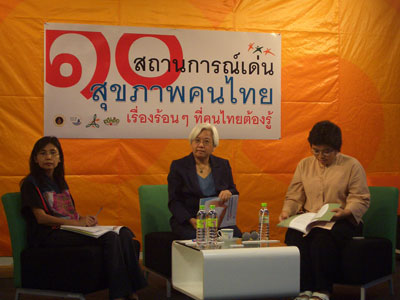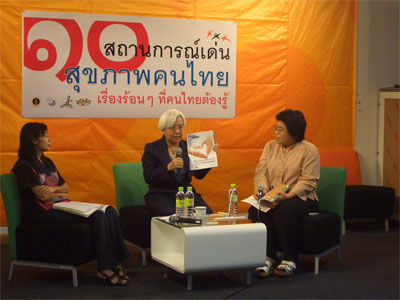 วันที่ 24 มีนาคม 52 สำนักงานกองทุนสนับสนุนการสร้างเสริมสุขภาพ (สสส.) ร่วมกับสำนักงานพัฒนาระบบข้อมูลข่าวสารสุขภาพ และสถาบันวิจัยประชากรและสังคม โดยมี รศ.ดร.กฤตยา อาชวนิจกุล และ อาจารย์อุมาภรณ์ ภัทรวาณิชย์ เปิดตัวหนังสือสุขภาพคนไทย ปี 2552 ณ ลานกิจกรรม ชั้น 35 สสส. โดยเนื้อหาในเล่มได้นำเสนอ 10 สถานการณ์ร้อนๆที่คนไทยต้องรู้ทั้งในเรื่องดี เช่น การเข้าถึงยารักษาโรคมะเร็งมากขึ้นของคนไทย จากการทำ CL ยา การเกิดสมัชชาสุขภาพแห่งชาติ เพื่อการขับเคลื่อนนโยบายสุขภาวะของชาติ และในเรื่องทุกข์ของสังคมไทยที่ต้องตระหนัก เช่น ภาวะซึมเศร้าการฆ่าตัวตาย การค้ามนุษย์ กรณีโรฮิงญา ภัยคุกคามทางเพศในสถานศึกษา และอื่นๆ