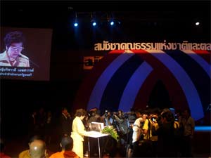 สำหรับวันที่ 27 มกราคม 2550 เป็นการส่งมอบ "ปฏิญญาคุณธรรม" ที่ร่างแล้วเสร็จให้แก่ นายไพบูลย์ วัฒนศิริธรรม รมว.กระทรวงการพัฒนาสังคมและความมั่นคงของมนุษย์ |