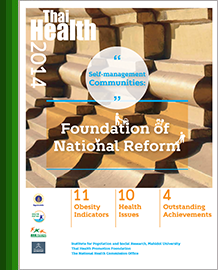 With this volume, Thai Health has entered its second decade of existence. Over the last ten years, we have solicited readers opinions on how to improve Thai Health further. Most readers would like the content and format kept as it is, with only some minor changes. Those suggestions, including explanations for tables and graphs and the use of simple language have been incorporated into successive volumes of Thai Health.