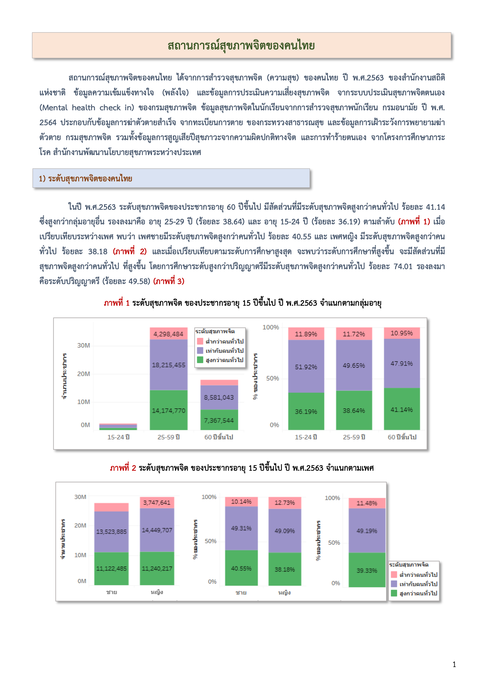 สถานการณ์สุขภาพจิตของคนไทย