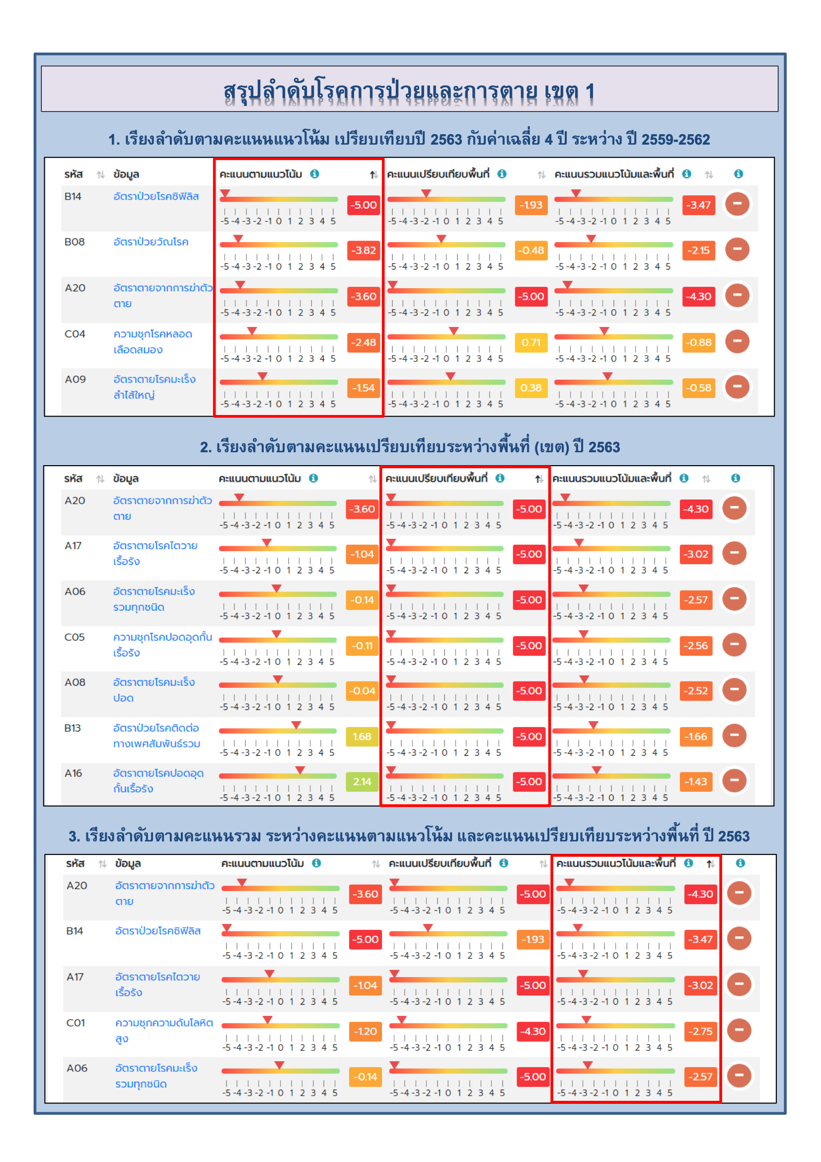 สรุปลำดับโรคตามคะแนน เขต 1