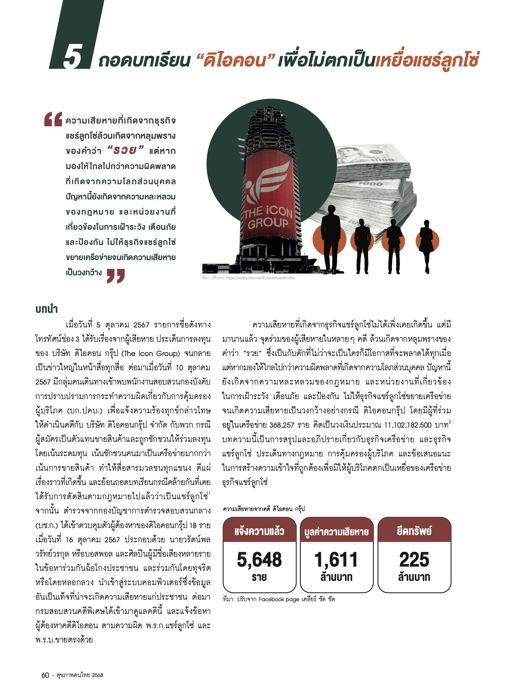 ถอดบทเรียน “ดิไอคอน” เพื่อไม่ตกเป็นเหยื่อแชร์ลูกโซ่